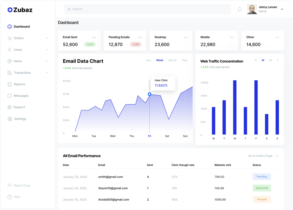 Zubaz is a user-friendly platform with powerful analytics and efficient automation that allows businesses to easily create personalized emails.